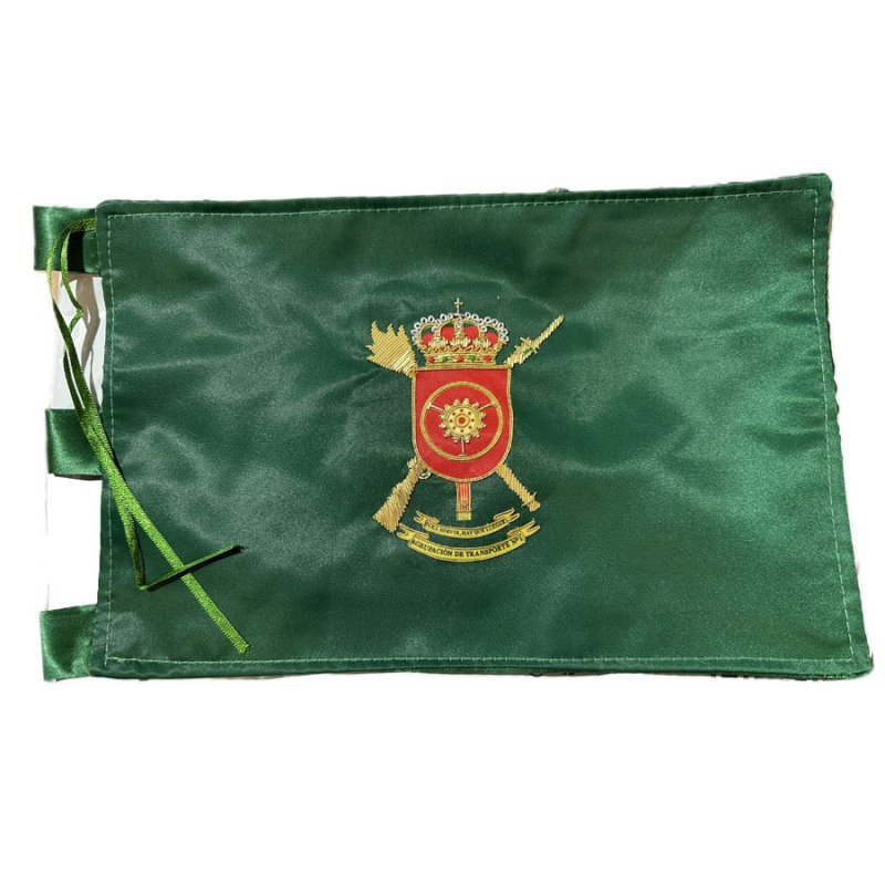 Bandera de escritorio bordada a mano con escudo de la Agrupación de transportes en una cara.