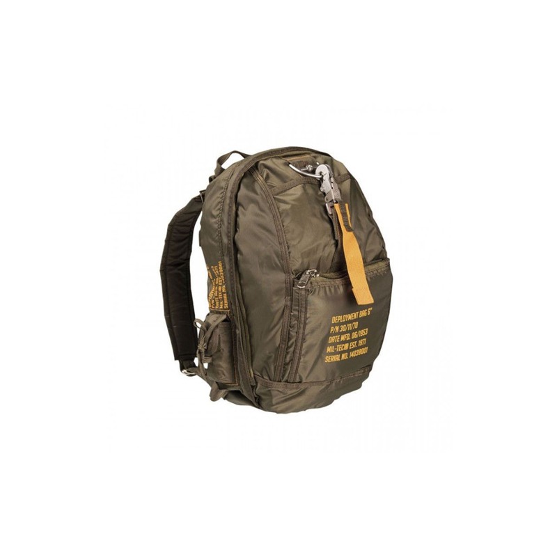 Mochila de la marca Mil-tec tipo paracaidas fabricada en nylon.