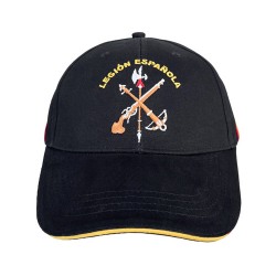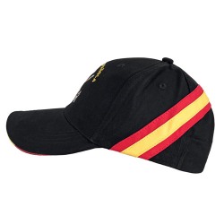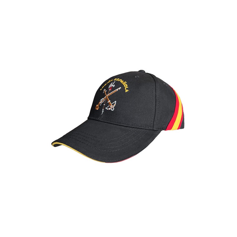 Gorra con Banderas de España y bordado del escudo de la Legión Española. Ajustable por la parte trasera mediante hebilla metálica. Disponible en los colores verde, negro, azul y blanco.