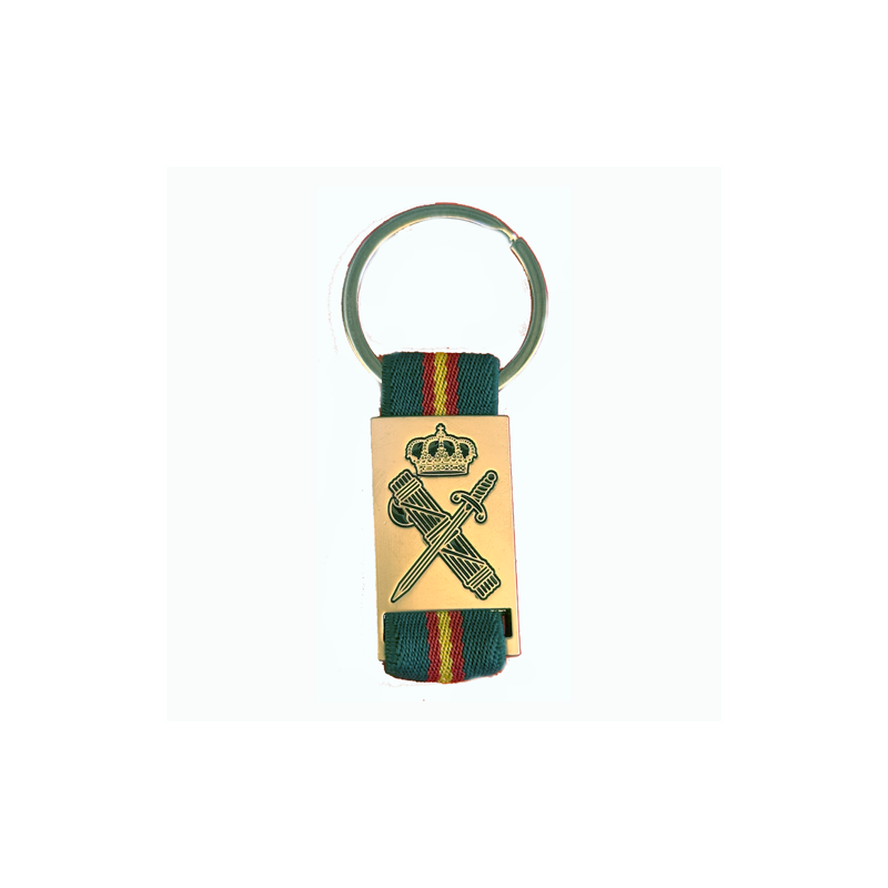 Llavero con cinta de Bandera de España con fondo verde y escudo Guardia Civil.