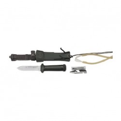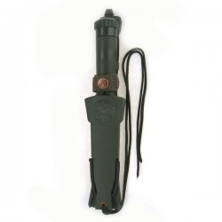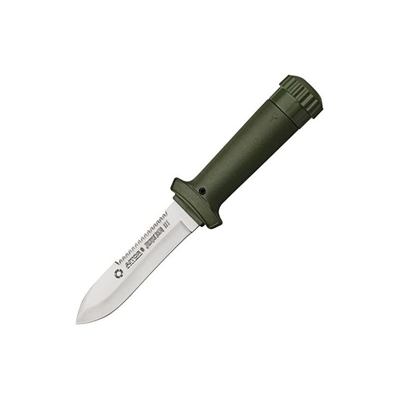 Cuchillo Aitor Jungle King III de supervivencia fabricado en España, es el mas pequeño de la "saga" Jungle King. Tiene una longitud de hoja de 10,5 cm. y 11 cm de empuñadura que hacen un tamaño total de 21,5 cm. con los 250 gr. de peso hacen de él una herramienta imprescindible para el campo. La hoja está fabricada en acero: X42 INOX. Cromo-Molibdeno-Vanadio de 4mm de grosor. La empuñadura está fabricada en polímero hueco para alojar en su interior bote con accesorios de supervivencia que contiene: Kit de pesca, kit de costura, bisturí, tiritas, pinzas, lápiz, brújula (Bajo el tapón) y lleva horquilla para tira chinas.