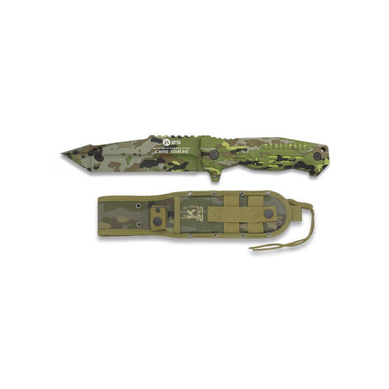 Cuchillo táctico de la marca K25 SPCB Camo Titanium de 14 cm. de hoja.
