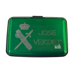 Tarjetero clásico personalizado de aluminio con tecnología RFID.