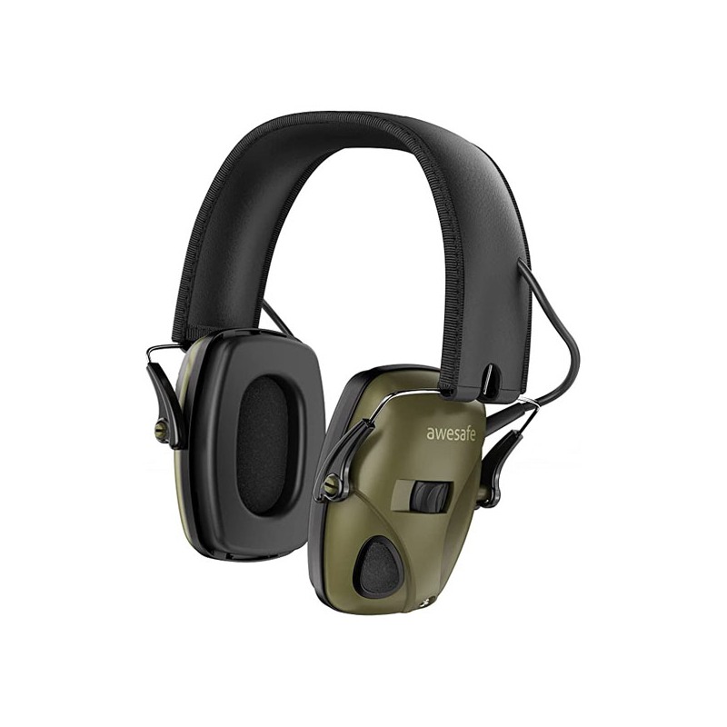 Cascos de tiro electrónicos plegables de color verde militar. Elimina los ruidos altos y aumenta los ruidos bajos.